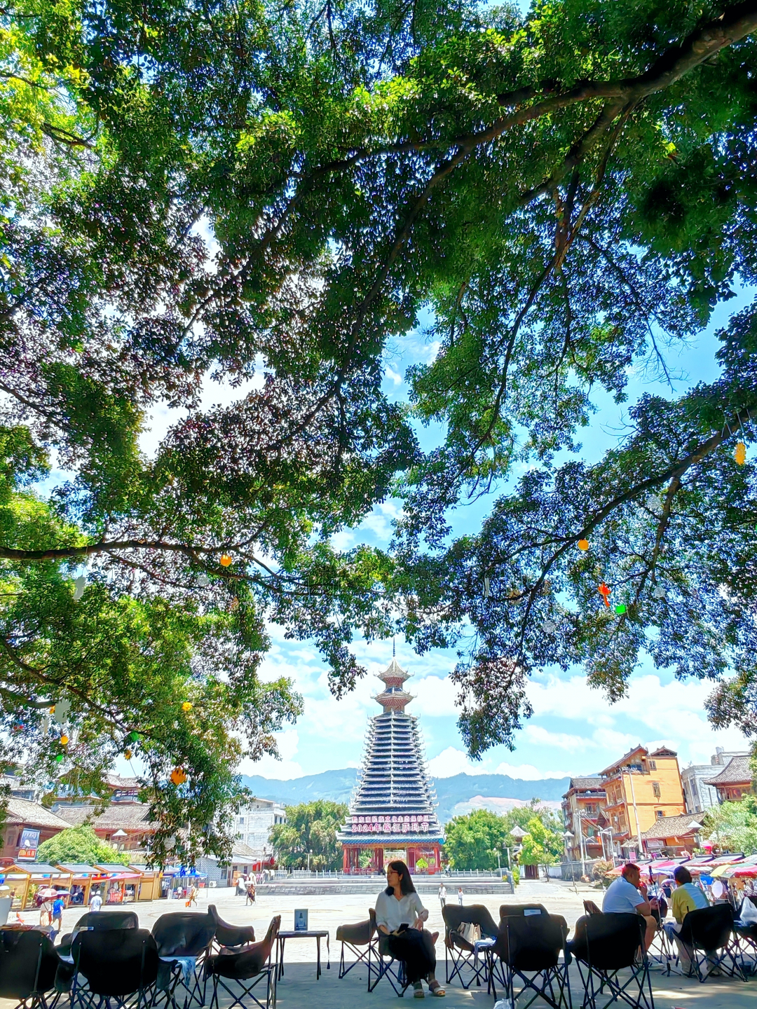三宝侗寨萨玛节祭祀现场成了人们旅游休闲的好去处(7月21日摄)
