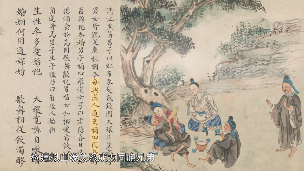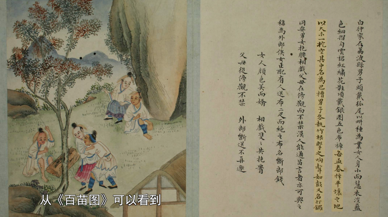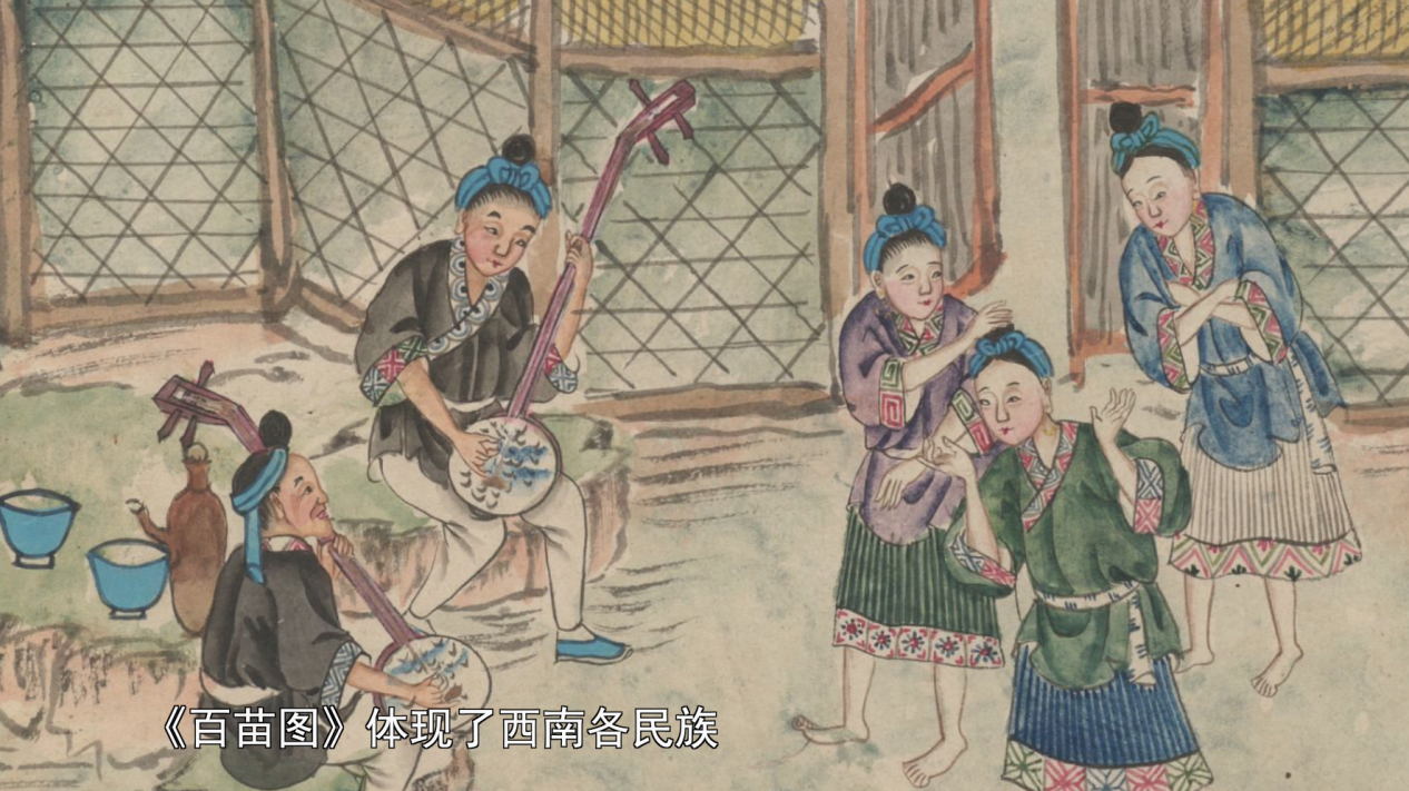 “如果我们从整体上看《百苗图》的话,我们可以发现它是一个很好的民族融合的样板,在这里面我们首先能看到各个民族自己的生活状态,各有特色,同时,我们又能看到各民族之间交往的情况,无论是各少数民族之间,还是少数民族与汉族之间,在文化上,他们是互相汲取的,最终走向共同的繁荣。”