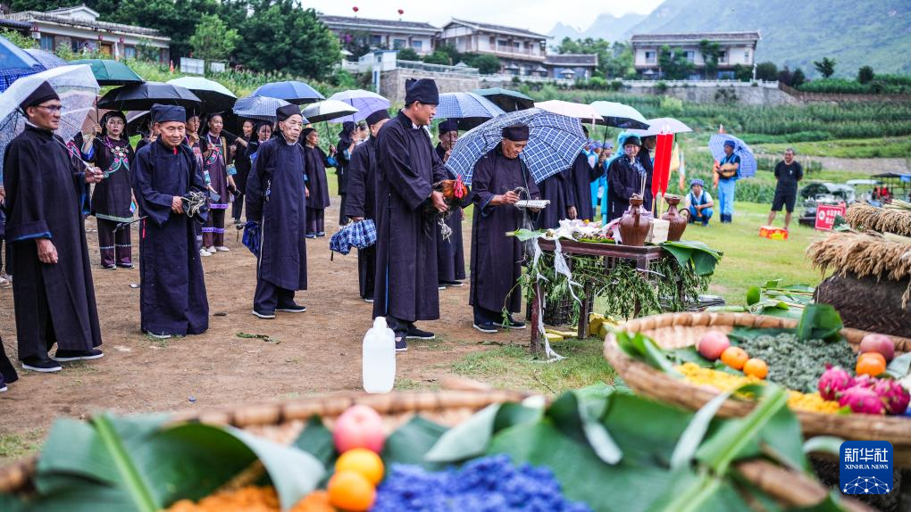 6月30日,当地布依族群众在六盘水市六枝特区牂牁江畔参加传统民俗活动。新华社记者 陶亮 摄