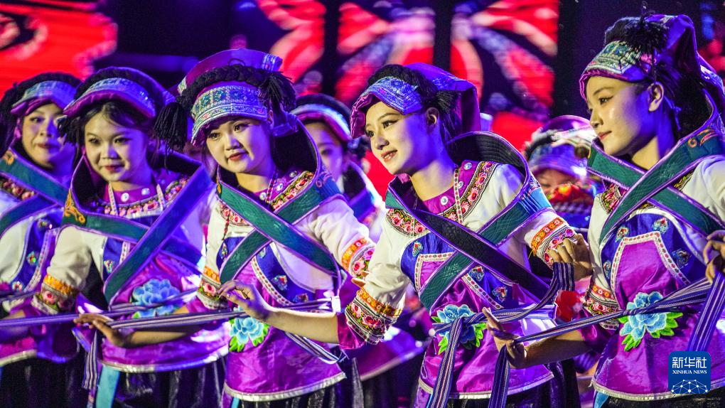 演员在表演舞蹈《贝侬织褓》(6月29日摄)。新华社记者 陶亮 摄