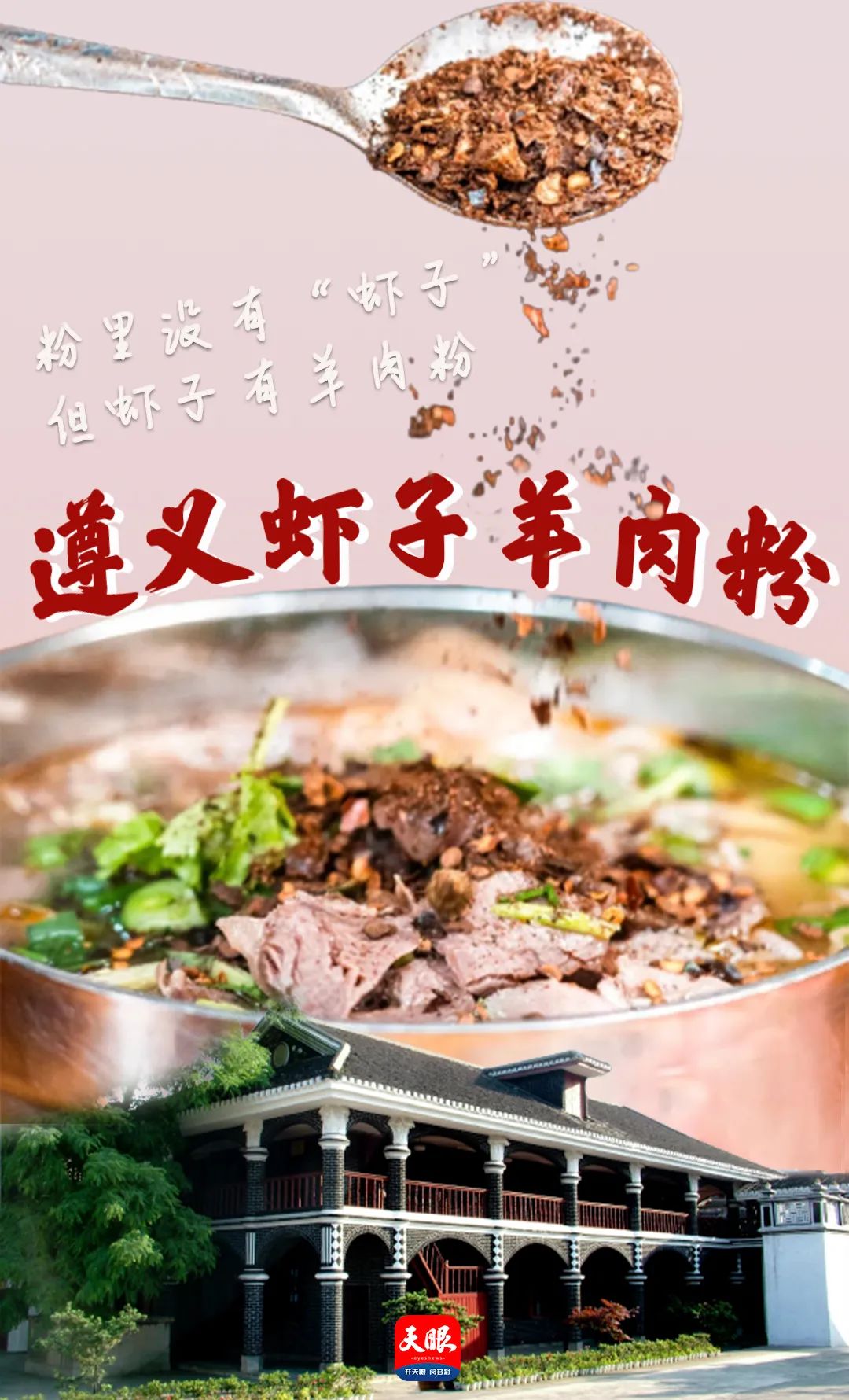 “老板,来碗羊肉粉,不要虾子!”初次吃这碗粉的人可能会这样和老板说。不要误会,这里的“虾子”可是遵义的地名,虾子镇的羊肉粉配上特色火辣的辣椒,直叫人吃得大汗淋漓,意犹未尽。