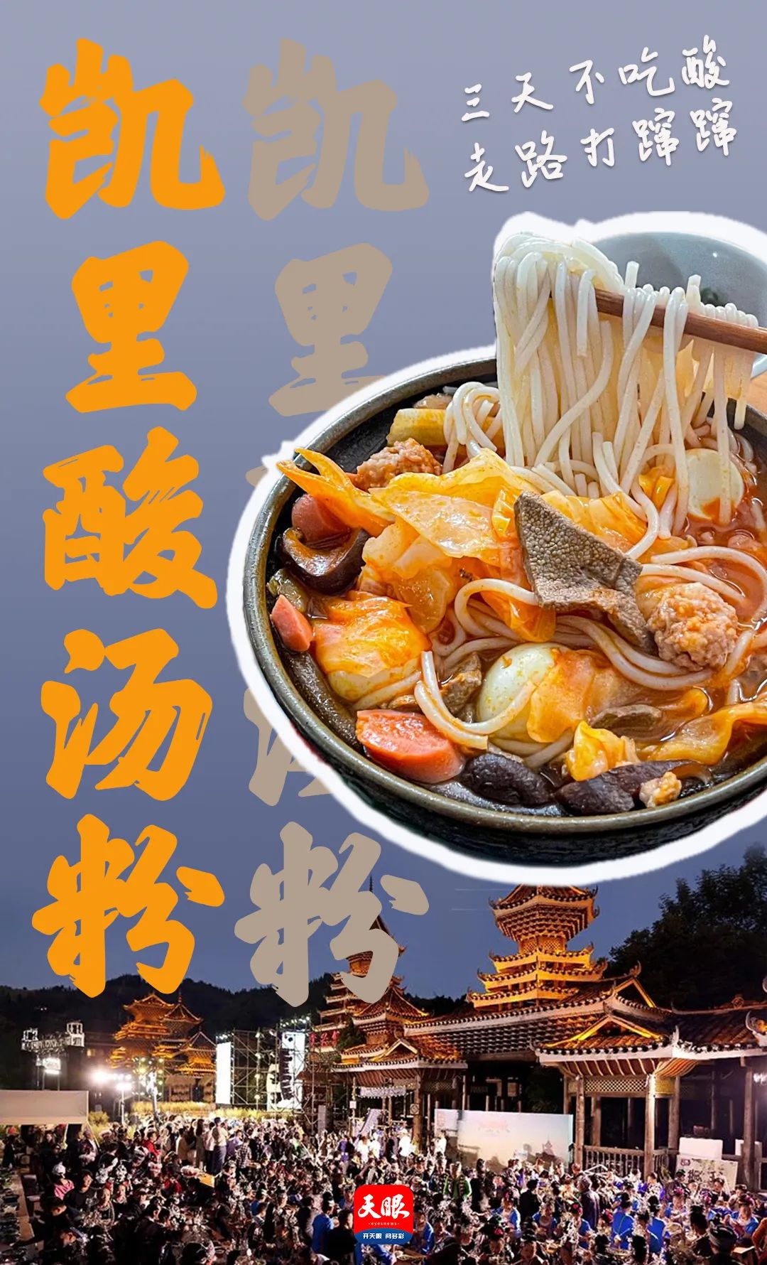 在凯里,无论是早中晚餐,酸汤粉永远是主角。凯里酸汤粉百吃不腻,秘诀在于那道酸汤底。汤底一般用本地的小番茄熬制,加上现剁的辣椒及猪骨熬制的高汤,具有酸、辣、甜、鲜多重口感。吃上一碗热气腾腾、鲜酸爽口又营养丰富的酸汤粉,直让人胃口大开,直呼过瘾。