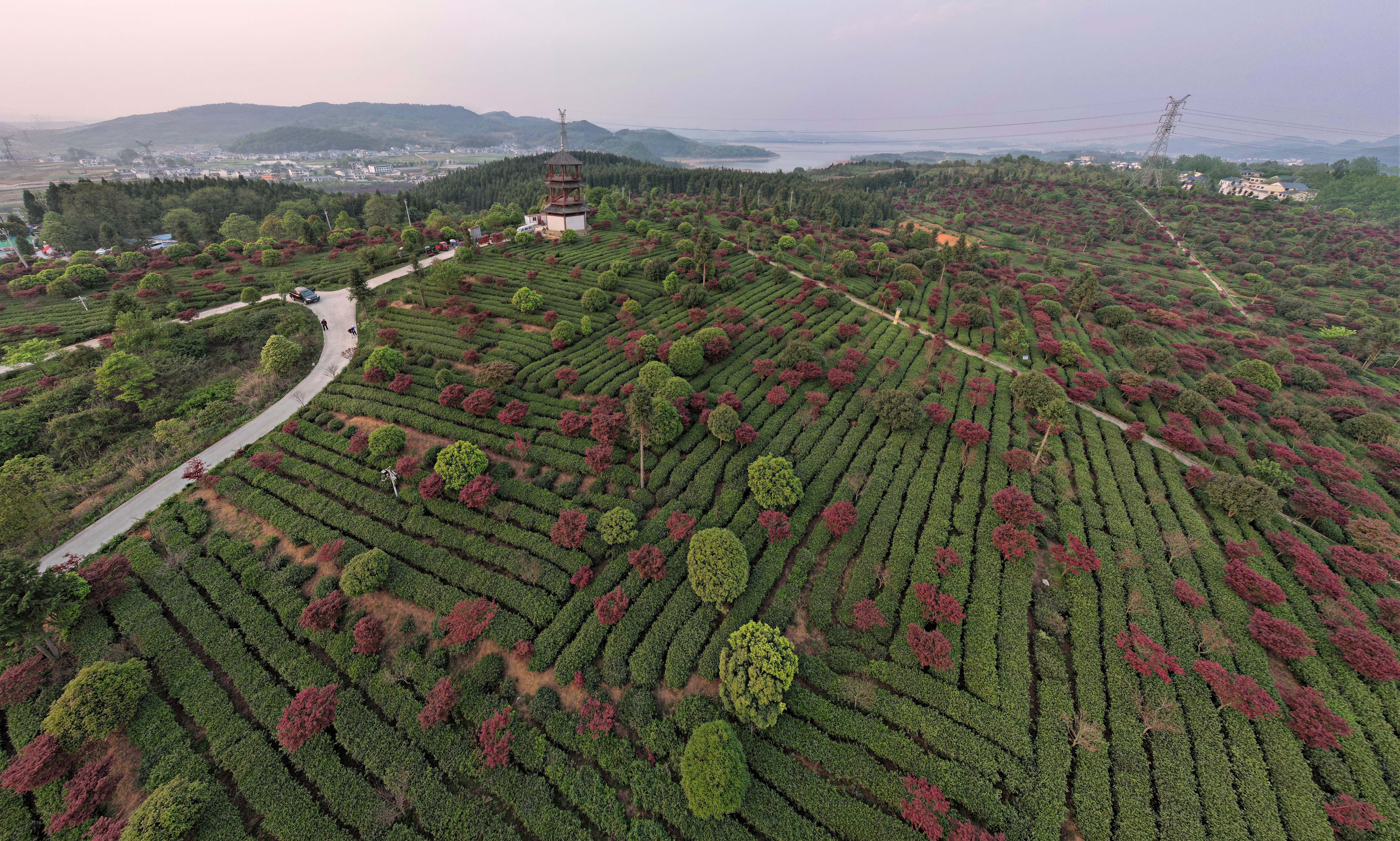 从贵阳自驾出发到目的地约1个小时。每年春天,茶园与樱林共赴春日之约。漫山遍野的樱花如粉色云霞倾泻,与层叠起伏的碧绿茶垄交织成流动的锦绣地毯。穿行于茶樱相间的蜿蜒步道,可赏采茶姑娘指尖翻飞的新芽翠影,可闻樱花雨落时裹挟的淡淡茶香,更可登上观景台定格“樱浪卷千堆,茶山接云海”的视觉奇观。