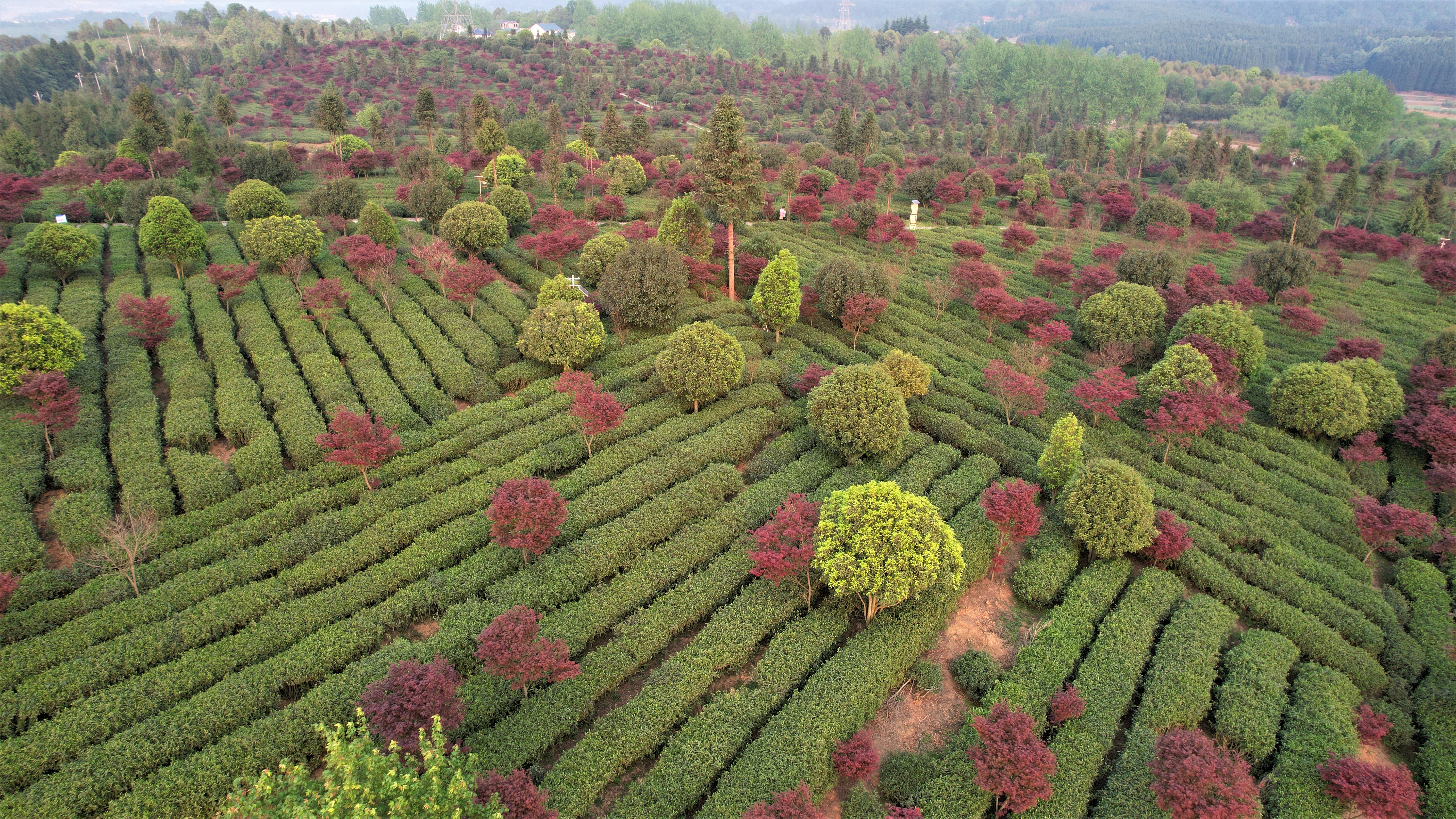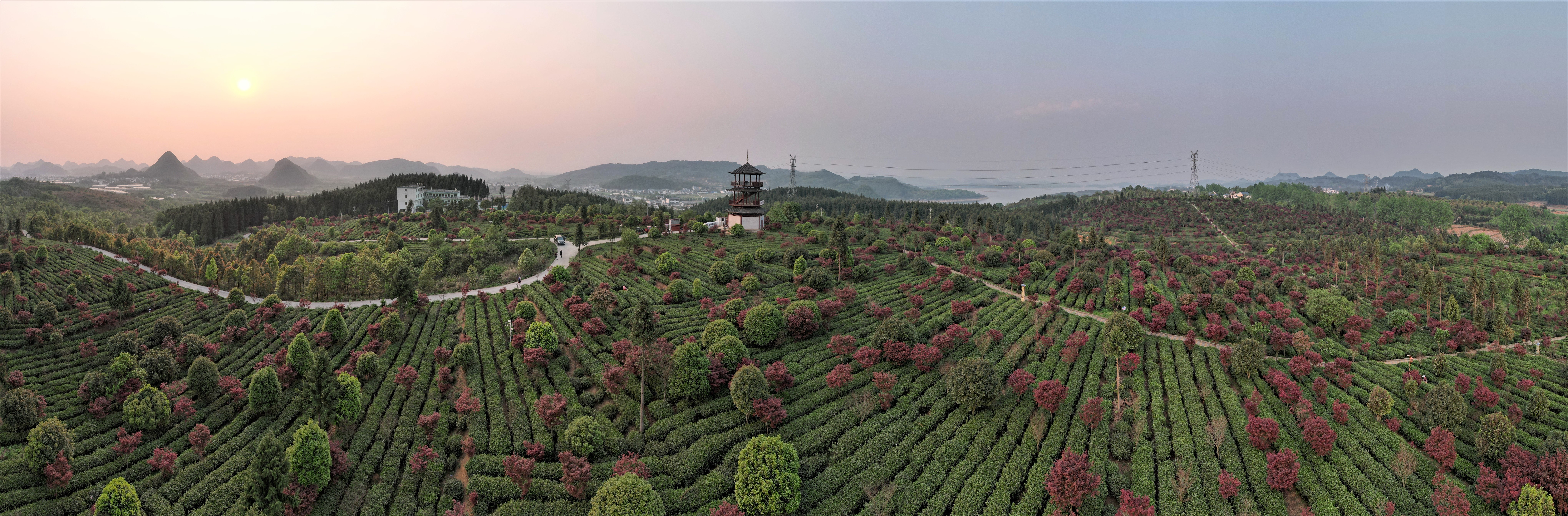 清镇藏着一处被春天偏爱的浪漫之地--红枫山韵茶场,茶场通过地名+企业+村(社区)+农户的模式,让传统农耕区蜕变为集生态观光、茶叶加工、文化体验于一体的乡村振兴示范区。这里不仅是黔中最早吐露春芽的茶园秘境,更与右二村万亩樱花林共绘“粉雪覆翠浪”的绝色画卷。当樱吹雪邂逅茶山雾,一杯春茶的清韵就此开启。