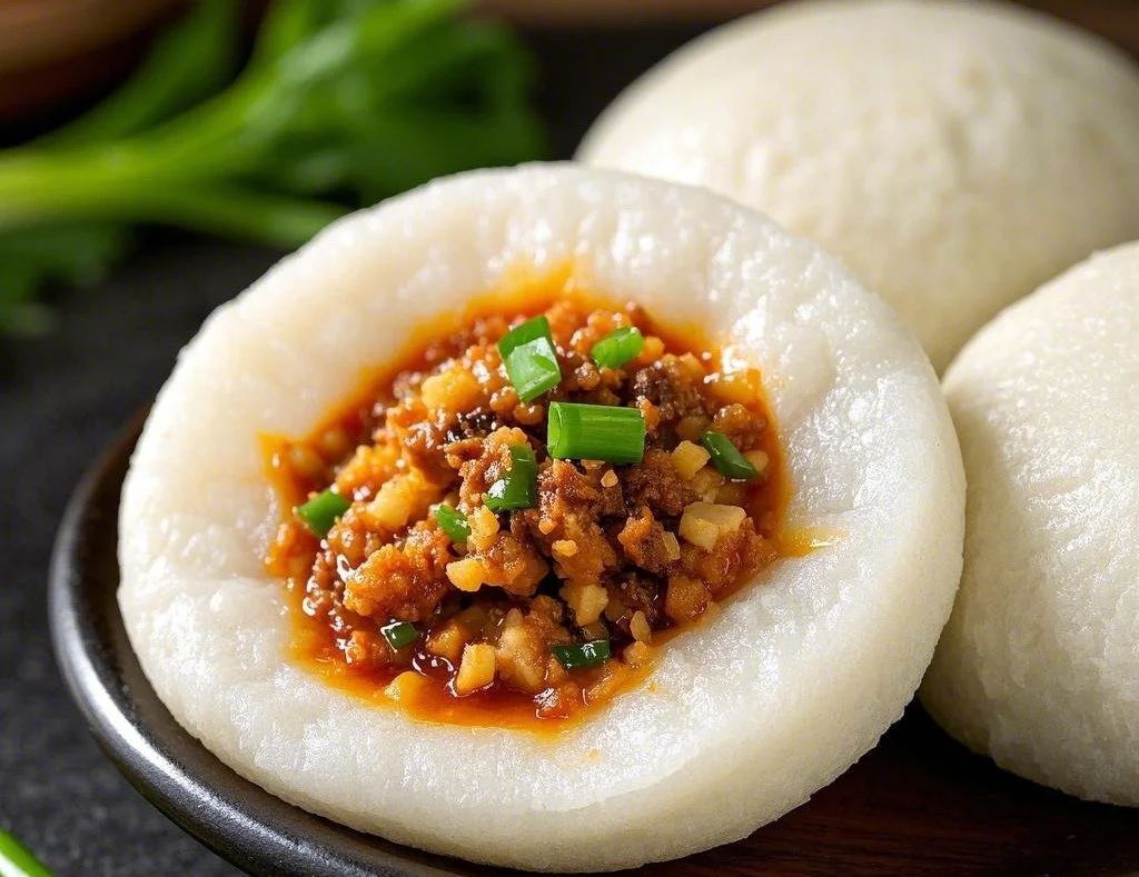 将白豆腐均匀分开,用食用碱腌渍8小时,在干锅上烙至内部化汤,切开一侧灌入拌好的肉末、折耳根、榨菜、葱花、味精、盐和辣椒面,将热糍粑分成薄片,每片包上1块豆腐、捏成扁圆形即成。可烤、烙或油炸食用。