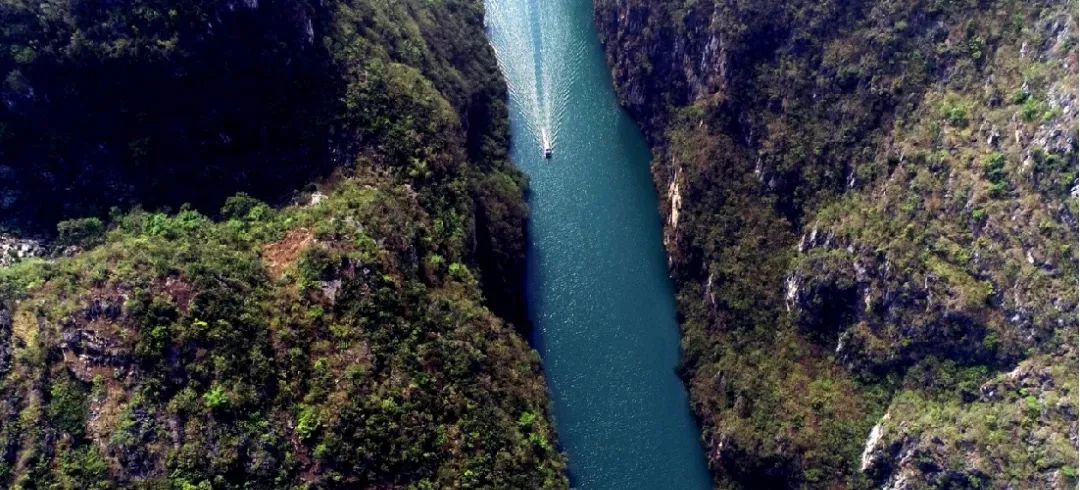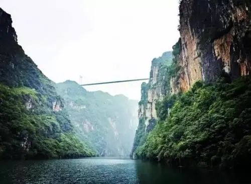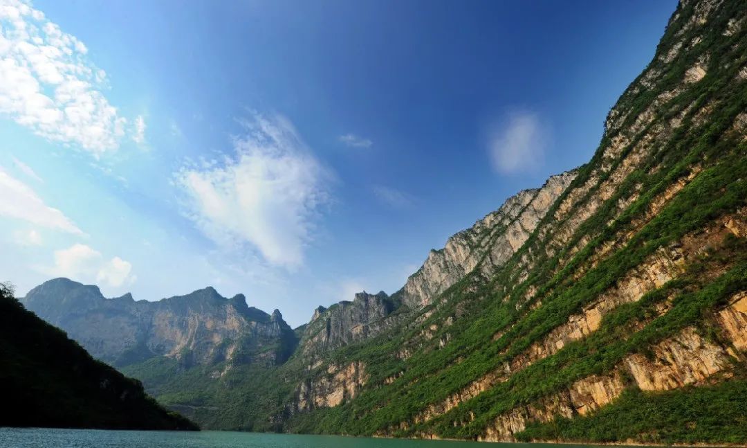 两岸崇山峻岭,悬崖绝壁,风光奇绝