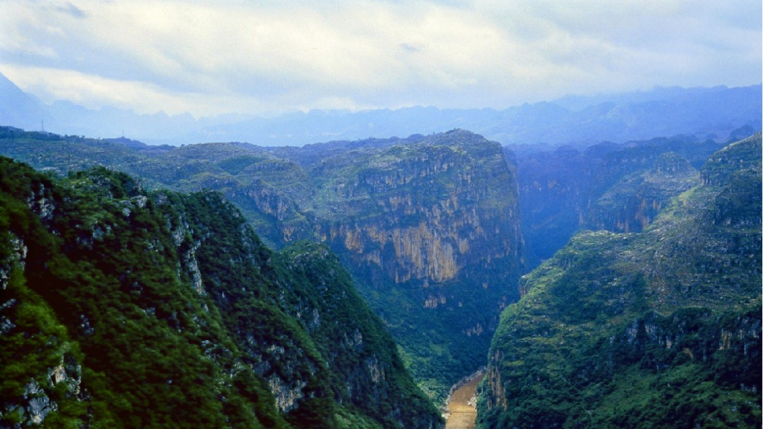 两岸陡峭连绵的山峰,深切千米