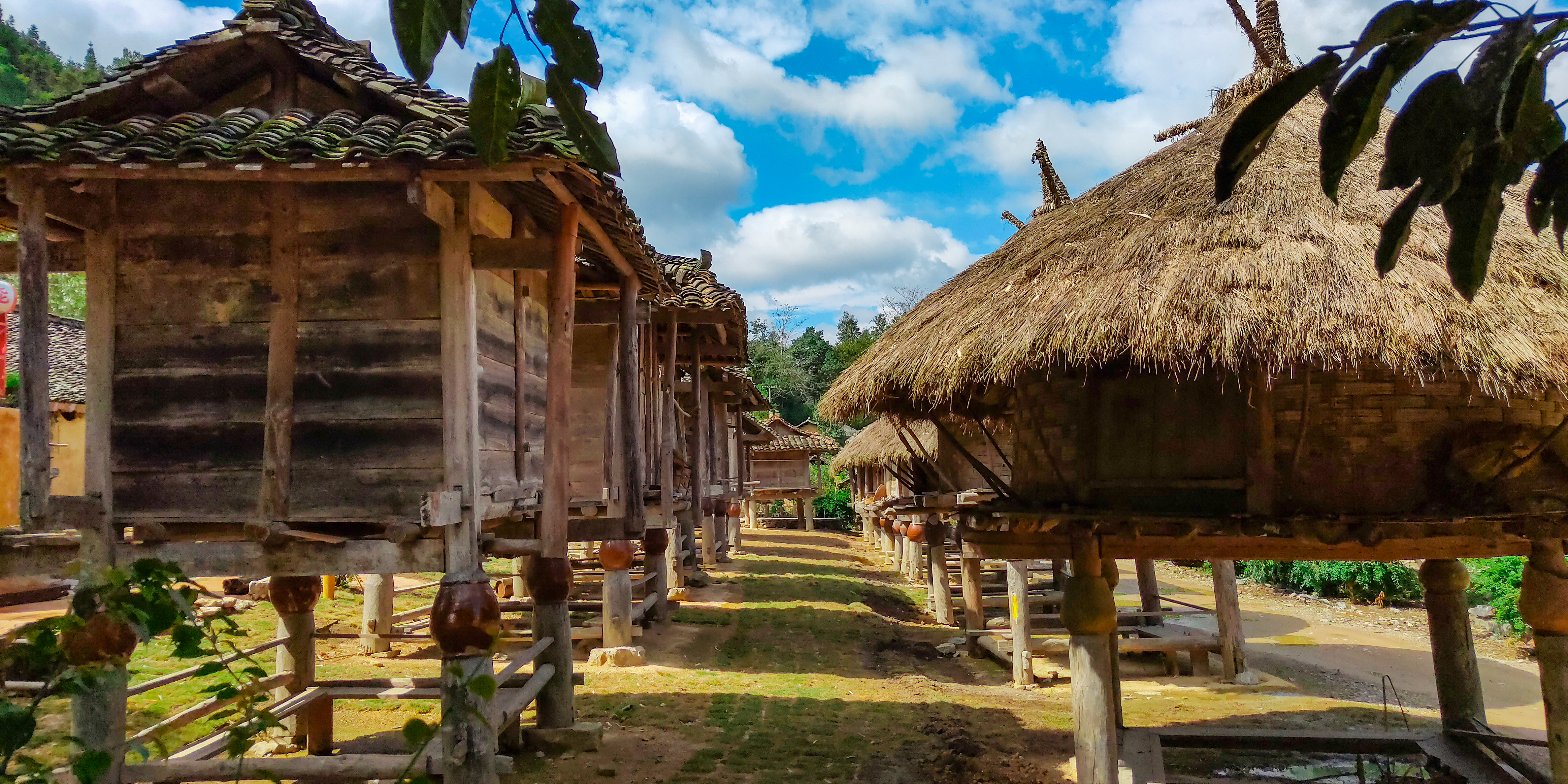走在瑶山村的小径上,土墙茅草顶的房屋散发着古朴的气息,仿佛穿越回了遥远的过去。铜鼓广场上的巨型牛头铜鼓庄重神秘,造型独特的古禾仓群历经沧桑,每一步都让人感受到岁月的沉淀与历史的厚重。