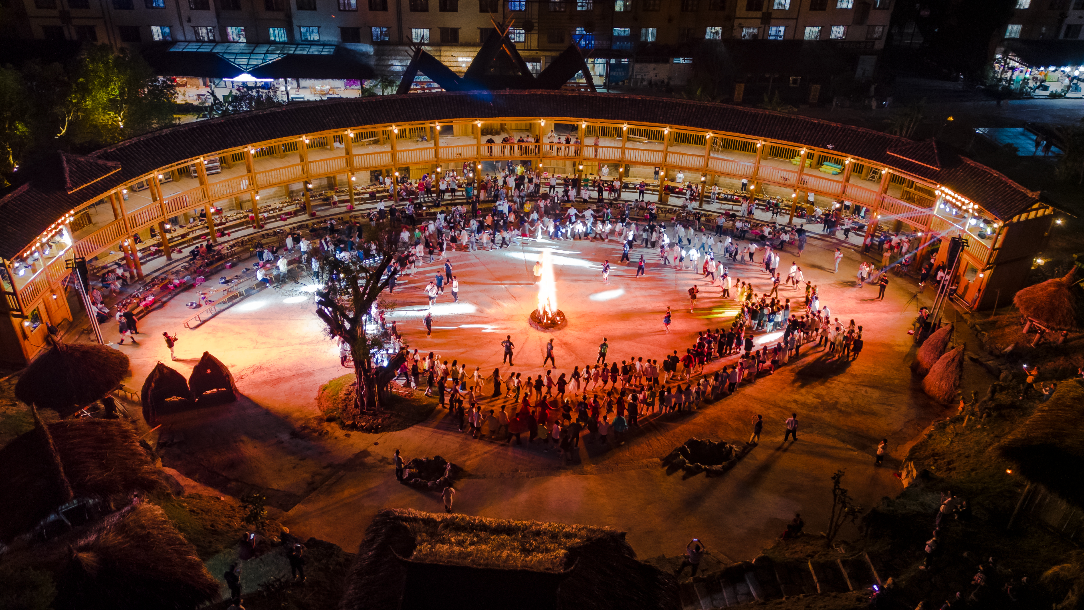 刚踏入瑶山村,“进入瑶家门,就是瑶山人”的热情便扑面而来。身着传统服饰的白裤瑶族男子站在寨门之上,列队鸣枪,用最庄重的方式迎接宾客。几声枪响唤醒了沉睡的村寨,伴随着铜鼓奏乐和醇香的糯米酒,一场沉浸式的古寨体验就此拉开序幕。