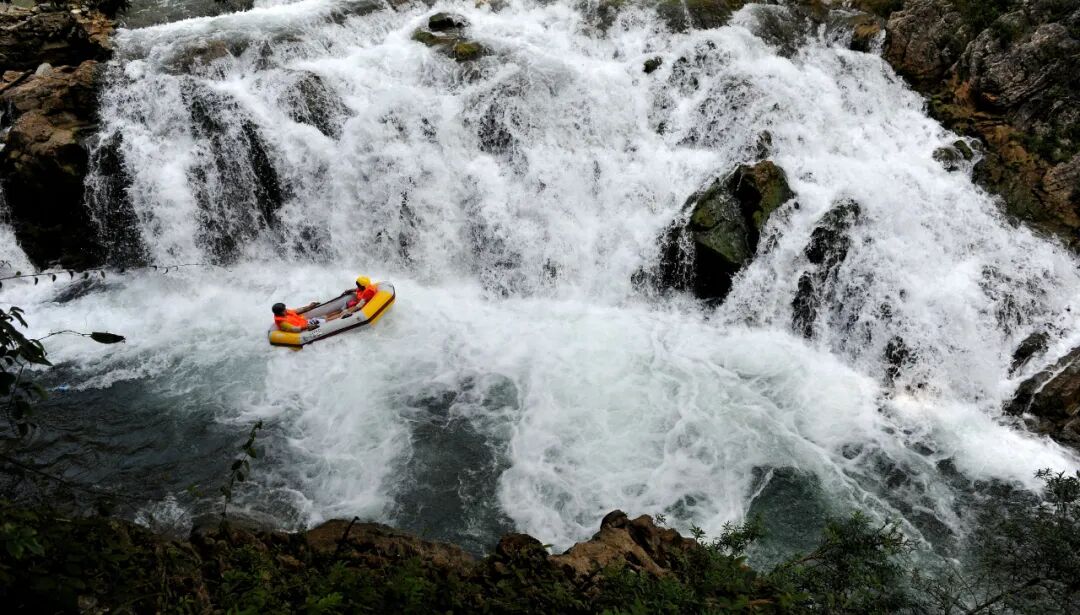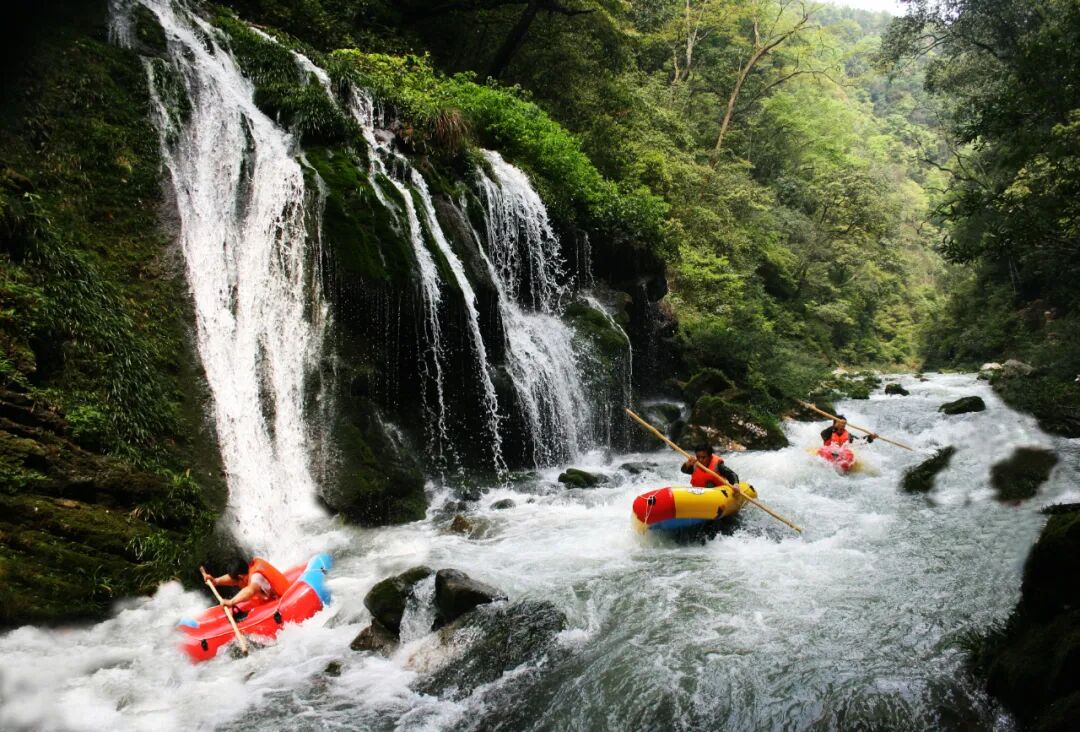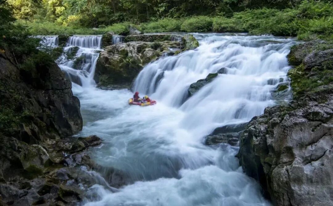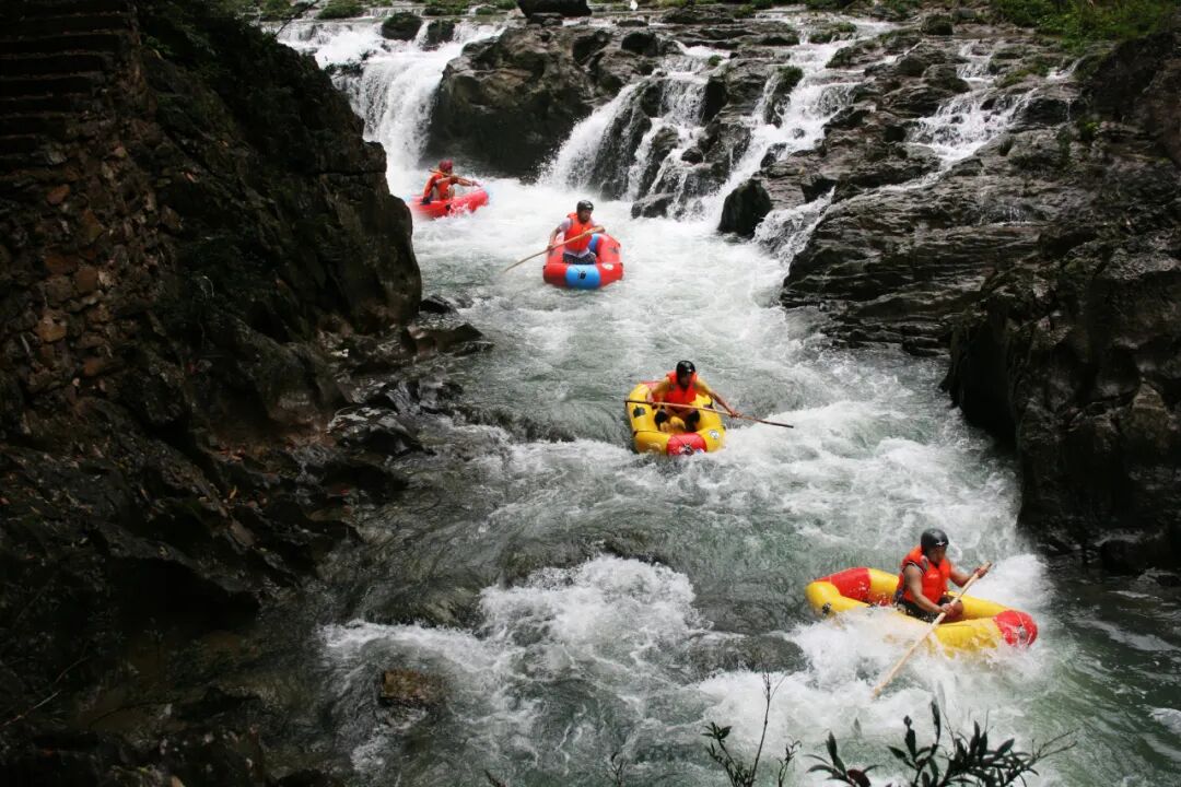 高过河的自然奇观是其漂流魅力的基石。景区由原始森林峡谷、深潭险滩飞瀑激流构成,总长18公里,是保存完好的天然大植物园。漂流河段长4.8 - 5公里,落差200米,3 - 4小时的漂流中,游客既能享受水平如镜的宁静,又能体验湍浪流急的刺激,堪称“快乐刺激,有惊无险”。峡谷两岸,古木参天、青藤倒挂,瀑布如碎玉飞花,配合蝉鸟唱和,被誉为“会唱歌的河流”。
