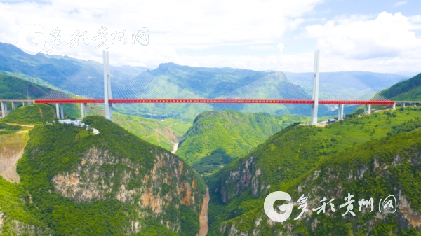杭瑞高速公路毕节至都格段北盘江大桥,大桥桥面离河底垂直高度565米,是目前世界第一高桥。(刘叶琳摄 )