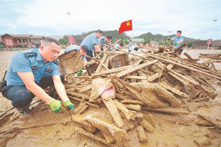 “从6月25日开始,我们就开始一边救援,一边清淤。”武警黔东南支队政治工作处副主任杨仁栋介绍,在清理贵州村超球场时,淤泥厚度有五六十公分,里面杂物较多,给清理工作带来难度。尤其是在清淤泥过程中没有设备,全靠战士双手处理。