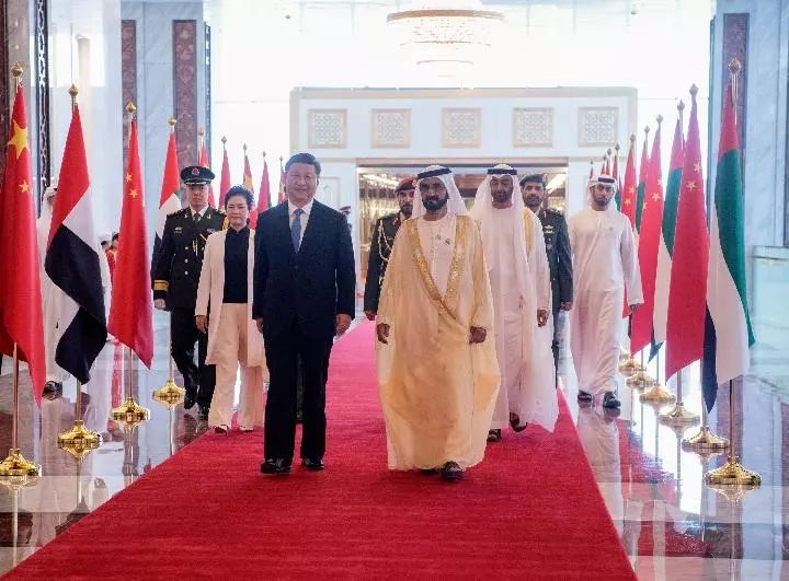 访问过程中,阿联酋领导人举行两场仪式,以表达对习近平主席的热烈欢迎。