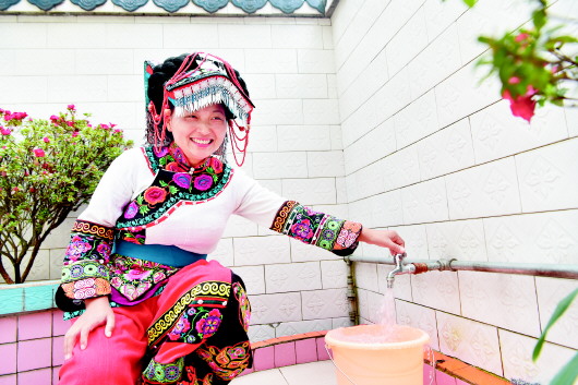 打开自家院子里的水龙头,望着眼前的清水,杨发海脸上不禁露出了笑容。他说,以前一家人共用一盆水洗脸,洗完脸再用来洗脚,洗完脚了也不能倒掉,还要拿来喂牲口,“现在政府免费为我们通了自来水,圆了我们世世代代想喝上干净水的梦想,真的非常感谢,水来之不易,我们会珍惜每一滴水的。”