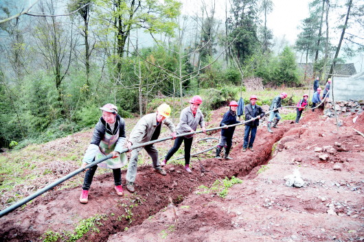 胡家贵说,在管道沟渠开挖方面,严格按照施工要求,在荒坡地段,管道沟深度50厘米,在田地,管道沟深度70厘米,确保土壤回填后不影响土地正常耕种。石头山以及村民房前屋后地段,则用高标号的混凝土包封,防止管道被凝冻等自然灾害损坏以及人为破坏。