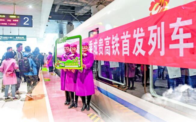 12月16日上午8时28分,成贵高铁贵州方向首发列车C6008从贵阳北启程,开往成都,成贵高铁全线开通运营。贵阳与成都两个省会城市最快2小时58分可达。川南宜宾、滇北昭通、贵州毕节等地区结束没有高铁的历史。