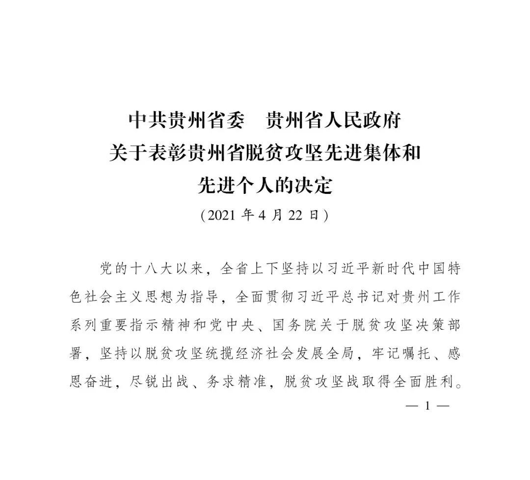 贵州省脱贫攻坚总结表彰大会4月23日上午10时在贵阳举行,《中共贵州省委贵州省人民政府关于表彰贵州省脱贫攻坚先进集体和先进个人的决定》正式发布,全文如下: