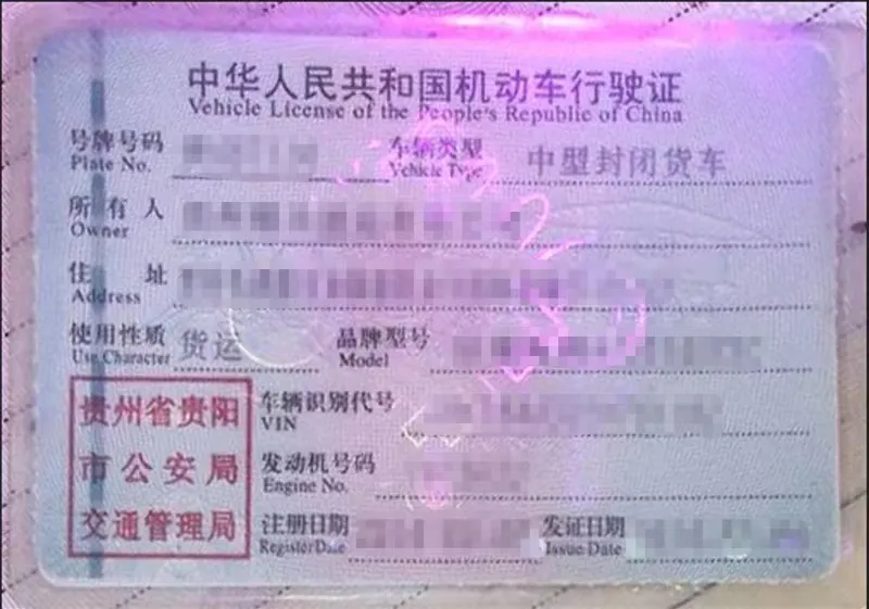 图例:行驶证“车辆类型”中明确具体车型