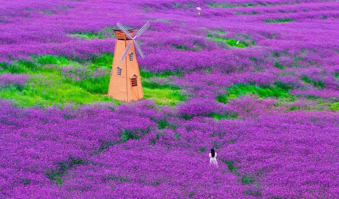 在高坡石门锦绣田园景区,还可以看到马鞭草花海,花海总面积近300亩,沿着小道在花海中穿行,紫色花海、白色风车休闲长椅……仿佛走进了童话世界,超好拍,而且非常出片!