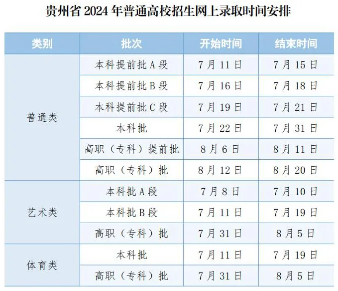 按照我省普通高校招生考试工作安排,高考录取工作已正式开始,预计8月20日全部结束,各批次录取工作时间具体如下:
