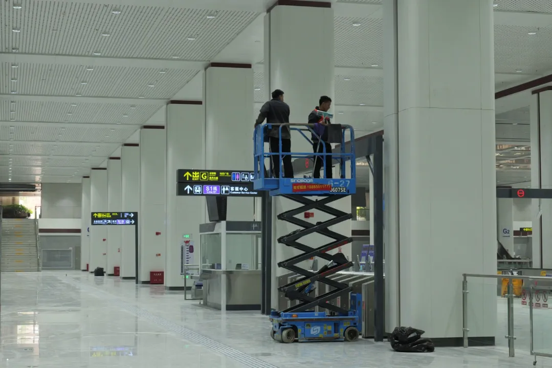 贵安站,工作人员忙碌着进行站内环境卫生的打扫