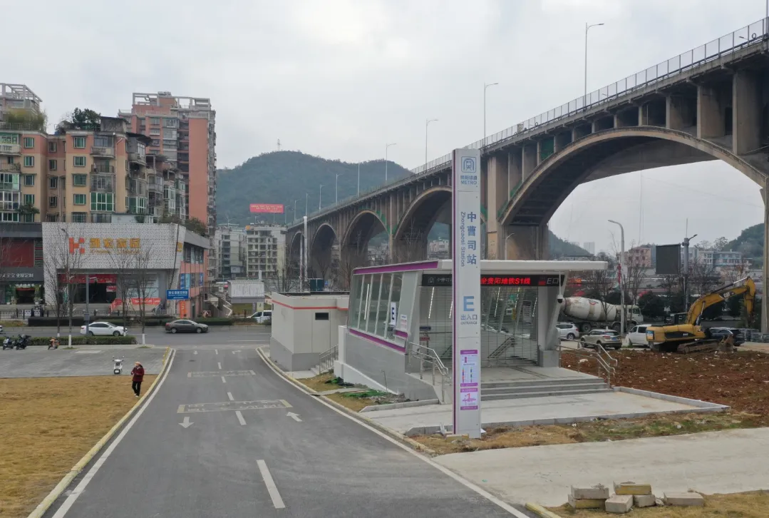 贵阳S1线由中国铁建昆仑投资集团联合中国铁建系统内的14家单位、2万多建设者参与建设。一期工程全长30.32公里,起于贵安新区皂角坝,止于南明区望城坡,横跨贵安新区、花溪区、经开区、南明区,共设13座车站,站点经过贵安新区皂角坝站、贵安站、大科城站、数谷大道站、星月湖站、大龙井站、天河潭站、石板哨站、金竹站、中曹司站、锦江路站、小河站和望城坡站,其中,中曹司站与望城坡站的换乘设计实现了贵阳轨道交通3号线与1号线的完美接驳,编织出一张便捷、高效的城市交通网络。