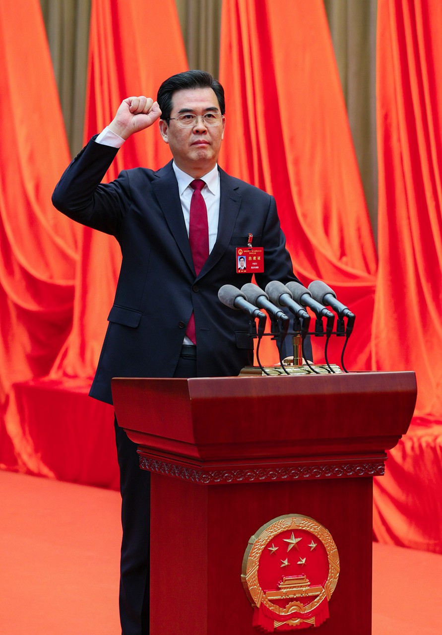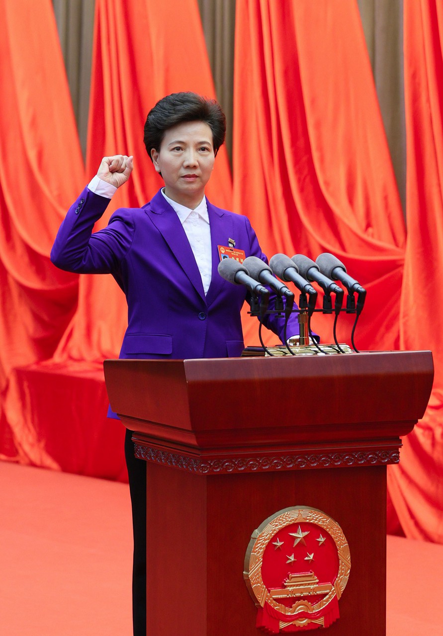 谌贻琴在当选省人大常委会主任后,向宪法宣誓。黄晓青 李森 杜朋城 贾智 林民 陈超摄。