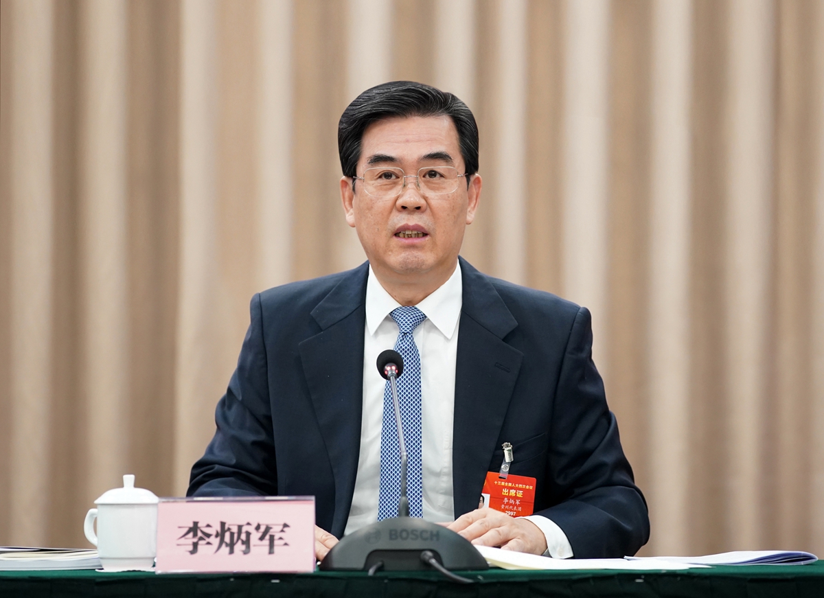 3月5日,全国人大代表、省委副书记、省长李炳军在审议政府工作报告时发表讲话。杜朋城 摄
