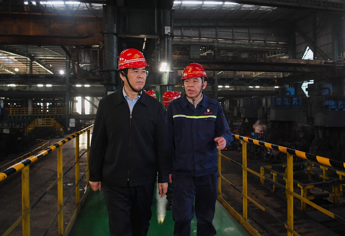 李炳军在首钢水城钢铁(集团)公司考察,勉励企业聚焦主业做优做强、为高质量发展作出更大贡献。贾智 摄