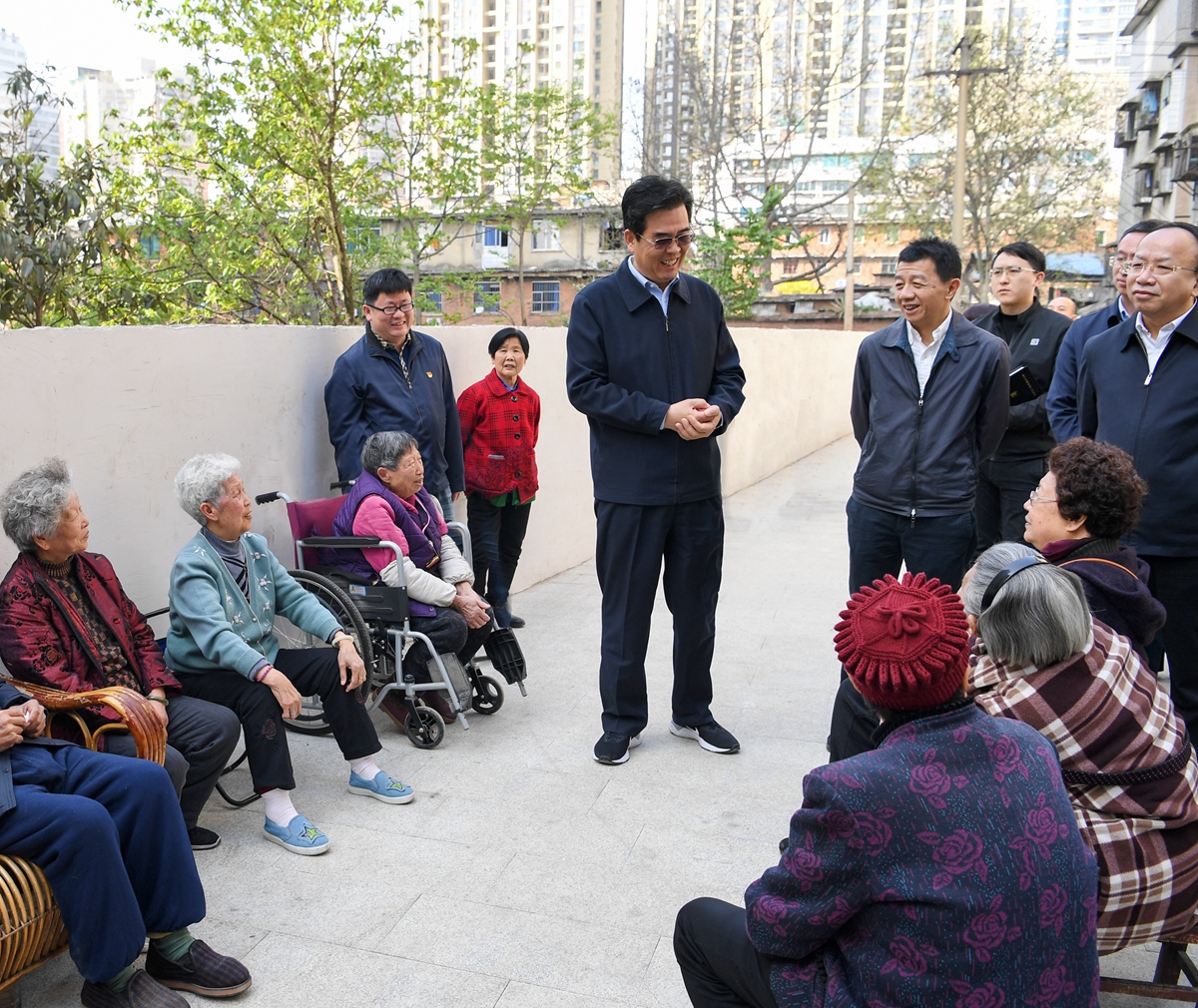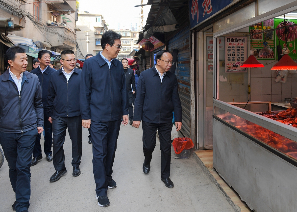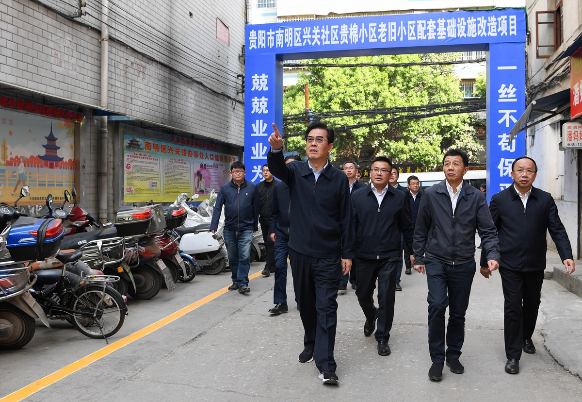 3月23日,省委副书记、省长李炳军到贵阳市调研新型城镇化和“强省会”工作。图为李炳军在南明区贵棉小区考察。贾智 摄