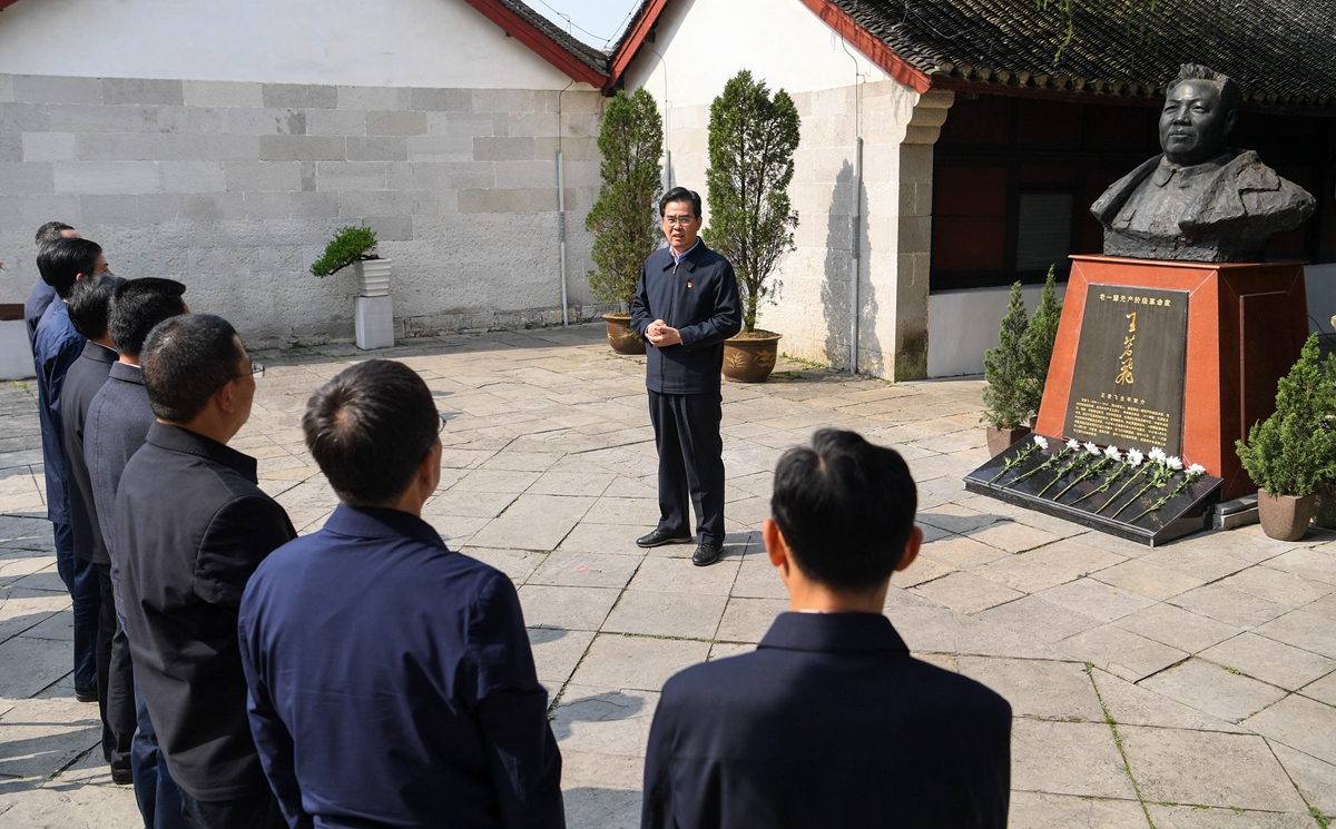 3月27日,省委副书记、省长李炳军赴安顺市调研,开展党史学习教育。图为李炳军在西秀区王若飞故居开展党史学习教育并发表即席讲话。贾智 摄