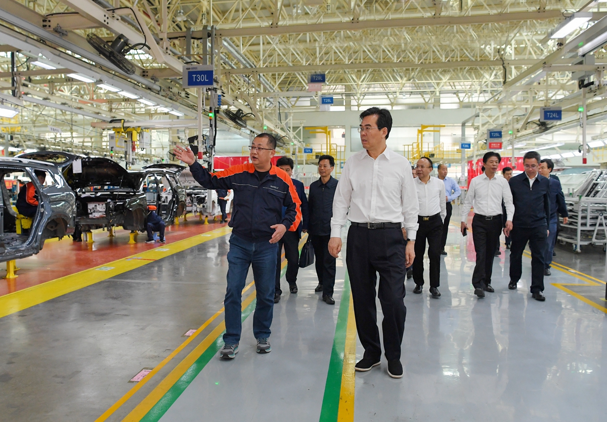 李炳军在贵州吉利汽车制造公司生产车间实地考察,详细了解企业生产经营情况。贾智 摄