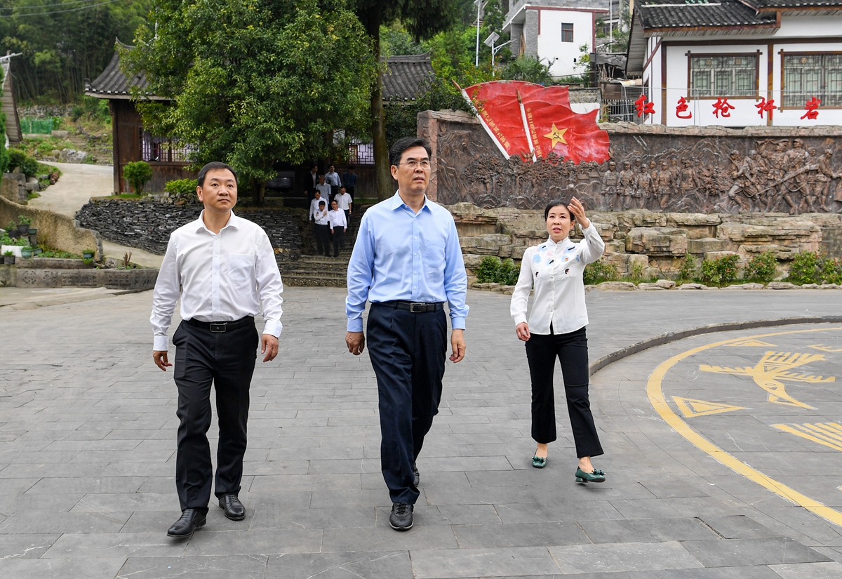 1935年,掩护红军主力北上的红九军团在化作乡枪杆岩村休整,与当地苗族同胞结下深厚情谊。李炳军专程来到枪杆岩红色教育基地开展党史学习教育。他说,革命先烈之所以历经艰难险阻而初心不改、浴血奋战,就是因为心里装着劳苦大众,我们要从党的光辉历史中汲取奋进力量,不断改善人民生活、增进人民福祉。