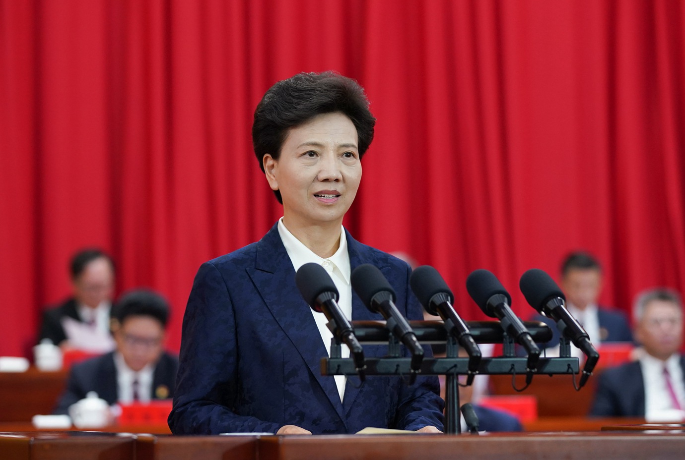 省委书记、省人大常委会主任谌贻琴出席会议并发表讲话。杜朋城 摄