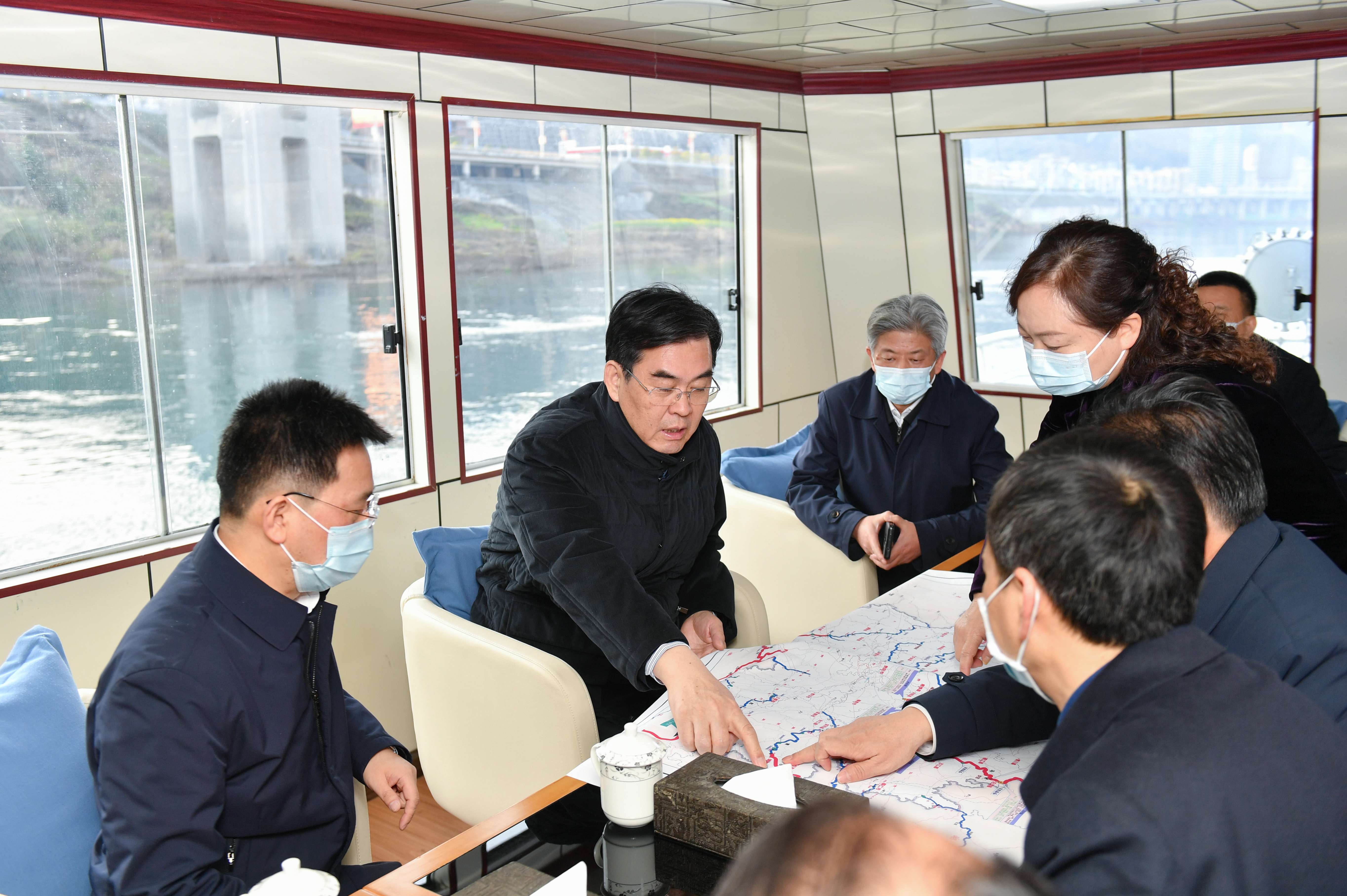 李炳军在沿河自治县山峡码头,乘船考察乌江生态环境保护和水质状况。闻双 摄