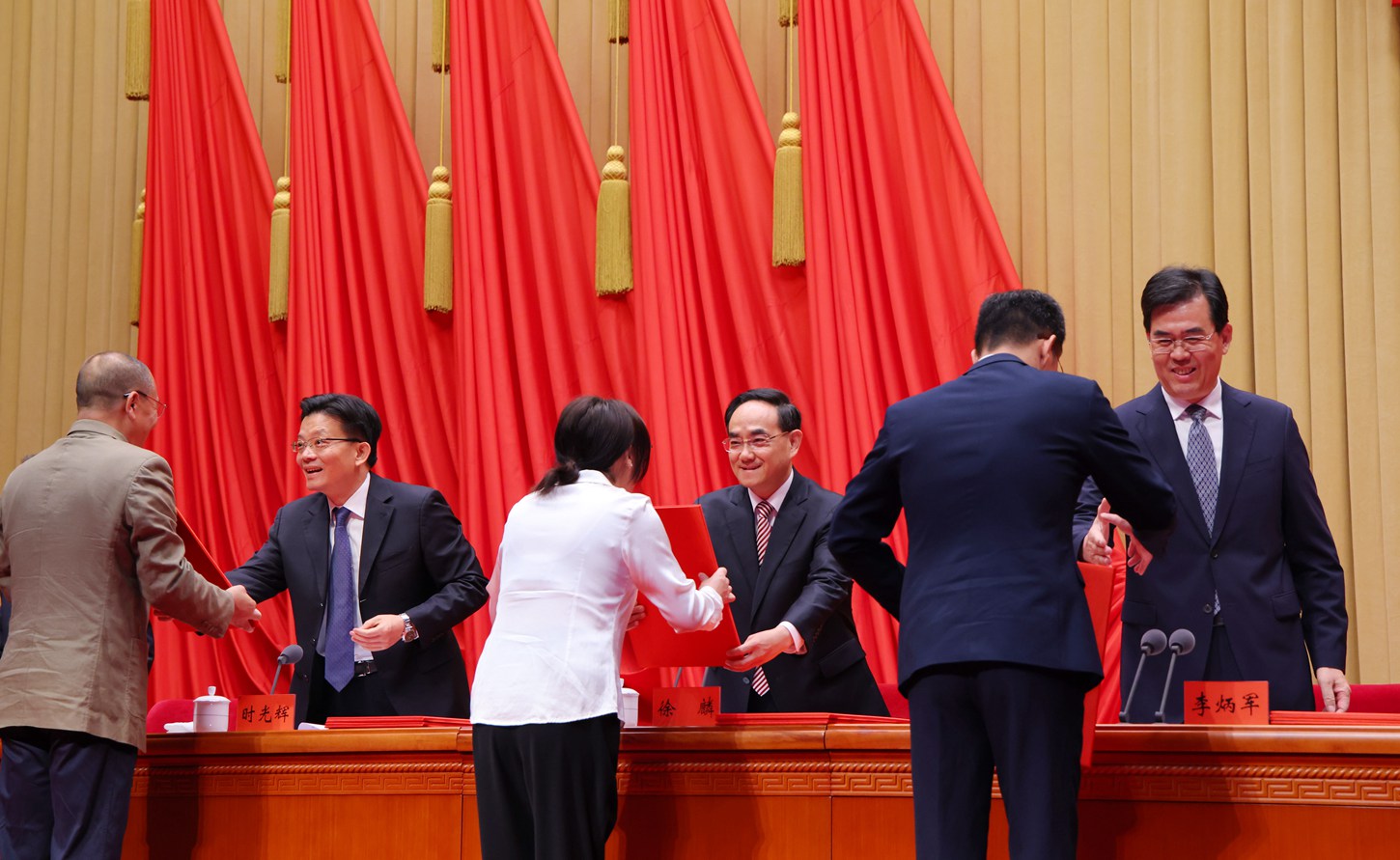 在热烈的掌声中,徐麟向2022年度省最高科学技术奖获得者中科院地化所冯新斌研究员、遵义医科大学何志旭教授颁奖,同他们亲切握手,表示热烈祝贺,并与他们合影留念。