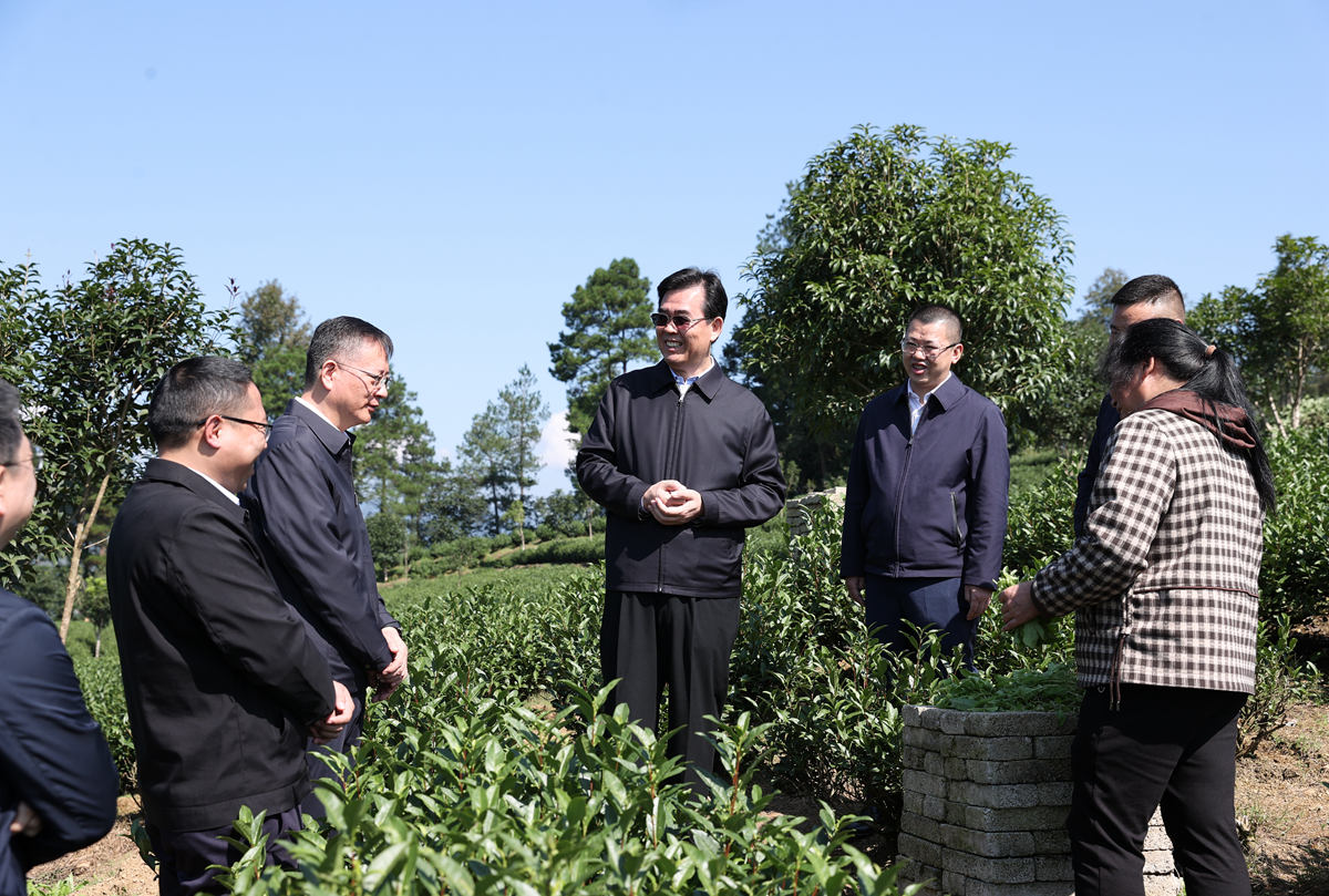 李炳军来到正安县土坪镇明星白茶基地,走进茶园察看茶叶长势,与茶农深入交流,详细询问白茶种植管护、市场销售等情况。