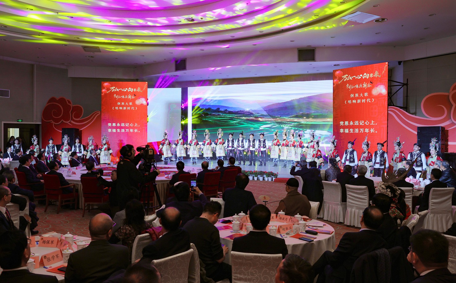 茶话会上,徐麟、李炳军、赵永清、时光辉等与各界人士亲切握手,互致问候和祝福。文艺工作者表演了精彩的节目。