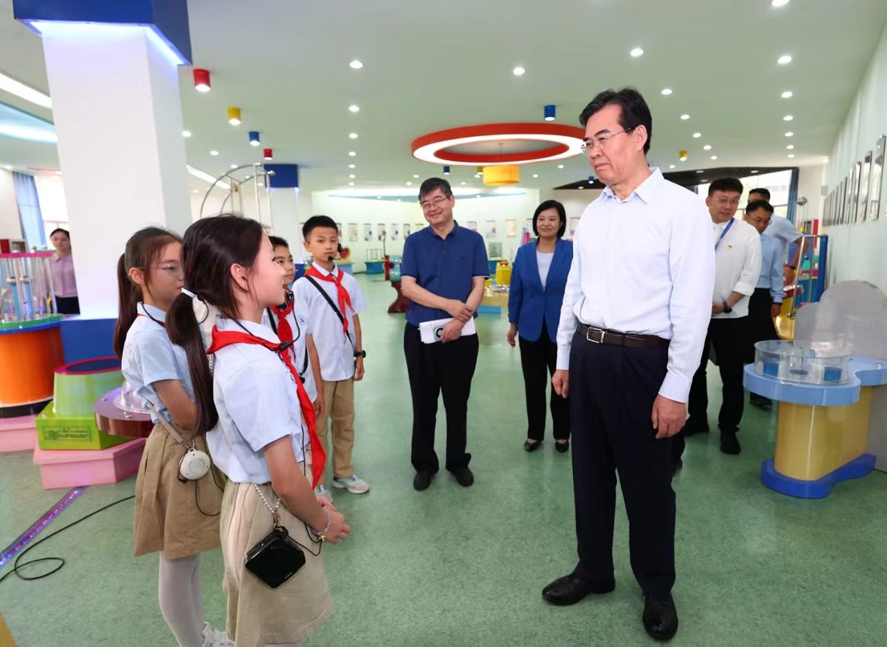 李炳军在北京师范大学贵阳附属小学,详细了解学生科创能力培养等情况,与学生亲切交流。