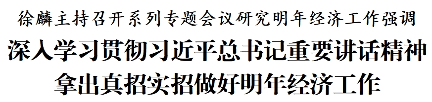 近日,省委书记、省人大常委会主任徐麟主持召开系列会议,就进一步贯彻落实中央经济工作会议精神,广泛听取有关省直部门单位、省属国有企业、市县、经营主体、一线工作者等意见建议,围绕扩大有效需求、产业发展、保障和改善民生、防范化解风险等进行专题研究。他强调,要深入学习贯彻习近平总书记在中央经济工作会议上的重要讲话精神,对标对表党中央决策部署,突出问题导向,拿出真招实招做好明年经济工作,推动全省高质量发展不断取得新成效。省委常委、省委秘书长郭锡文参加。