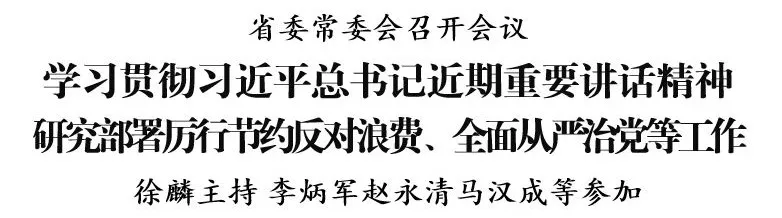 6月20日,省委常委会召开会议,学习贯彻习近平总书记近期重要讲话精神,学习贯彻《党政机关厉行节约反对浪费条例》,听取十三届省委第四轮巡视整改情况和第七轮巡视工作情况汇报,部署全面从严治党等工作。