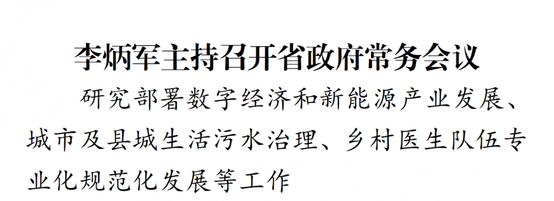 10月9日,省委副书记、省长李炳军主持召开省政府常务会议,研究部署数字经济和新能源产业发展、城市及县城生活污水治理、乡村医生队伍专业化规范化发展等工作。