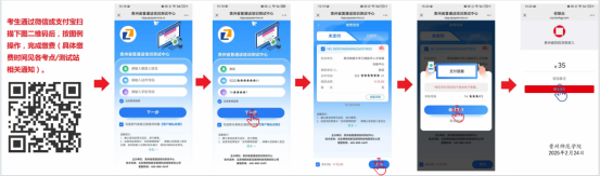 7.缴费方式:报名成功后考生可通过“贵州省普通话培训测试中心”微信公众号上的缴费链接缴纳,或通过微信或支付宝扫描下图二维码后按图例操作完成缴费。(注意缴费时间节点)