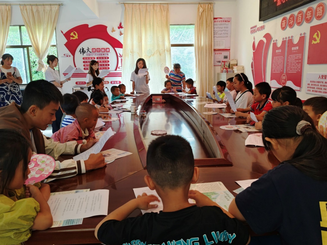 在村委会党员活动中心,团队成员邀请当地小朋友,举办以“童心向未来 普通话伴我成长“为主题的宣传活动。