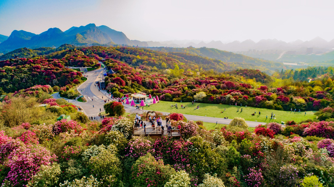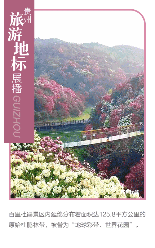 毕节百里杜鹃景区由普底、金坡、方家坪、花王等多个景区组成,景区内绵延分布着面积达125.8平方公里的原始杜鹃林带,被誉为“地球彩带、世界花园”。每到春天,漫山遍野的杜鹃花争相绽放、姹紫嫣红,犹如苍穹间打翻的调色盘,在乌蒙山的高原上摇曳着惊世容颜。