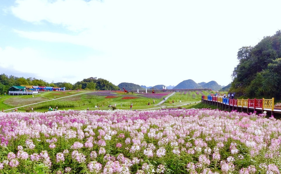 彝山花谷景区以莫奈花园油画为设计灵感,一年四季均有不同花卉盛开,区内现有花卉基地、沸腾小镇、云朵乐园、云阶书屋、气味博物馆、悬浮咖啡厅、玻璃吊桥等娱乐、餐饮新业态,还有30余个温泉汤池。
