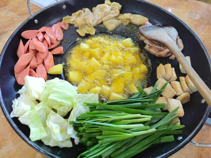 毕节烙锅:将洋芋、鸡蛋、臭豆腐、鸡杂、瘦肉等菜品全部放进砂陶或者铁制的烙锅里,用上好的菜油烙制食材,再加上配置独特的辣椒面,美味可口,是当地人最喜欢的美食。
