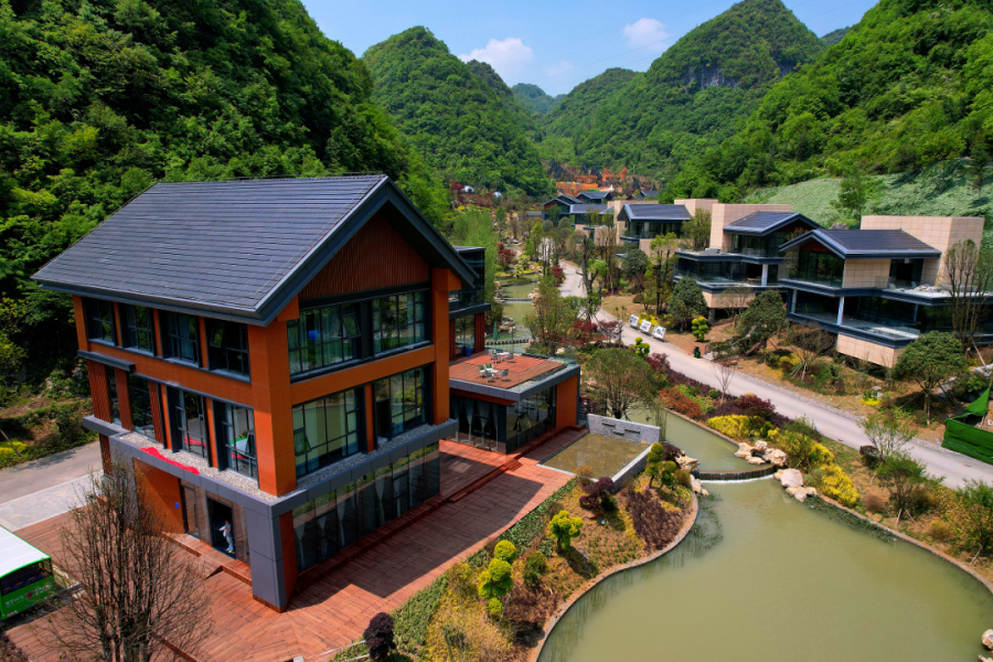 花都里·化屋精品民宿:民宿背对陡峭高山,拥抱乌江源百里画廊绝美景观,有眺望江景房、江景大床房、花园江景房等五个房型,还有一间独具特色的树屋,倚树而建,在大树枝桠掩映下,别有情调。