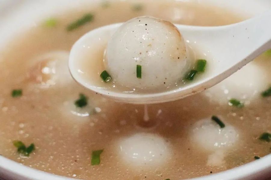 鸡肉汤圆:汤圆以鸡肉为馅,内灌鸡汤,并附上花生酱或芝麻酱,肉馅细嫩,汤汁鲜美,别具一番风味。