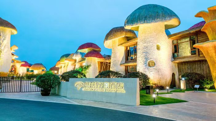 兴义蘑菇野奢酒店:酒店位于贵州醇旅游度假区内,外观以野生蘑菇形态为设计主题,每栋都有入户花园或露台。